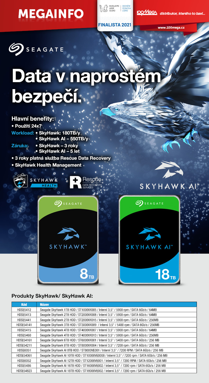 Data v naprostém bezpečí s disky Seagate SkyHawk.