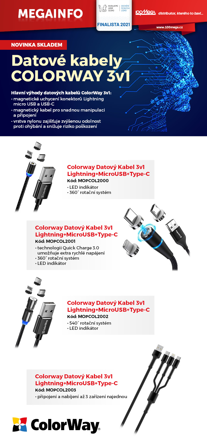 Datové kabely ColorWay 3v1.