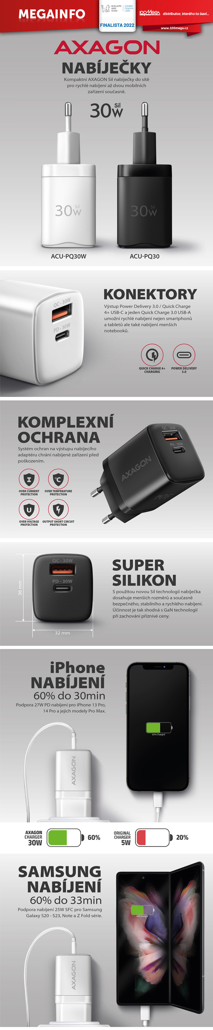 Kompaktní USB nabíječka do sítě Axagon s technologií Sil