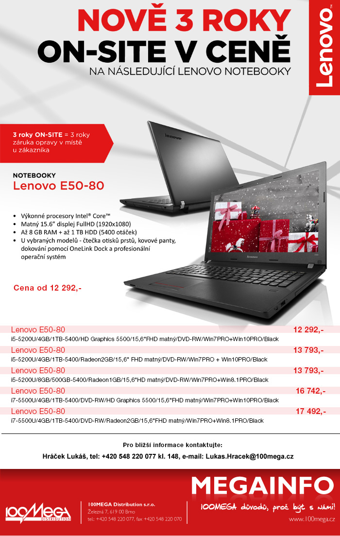 Nově 3 roky on-site v ceně na vybrané Lenovo notebooky.